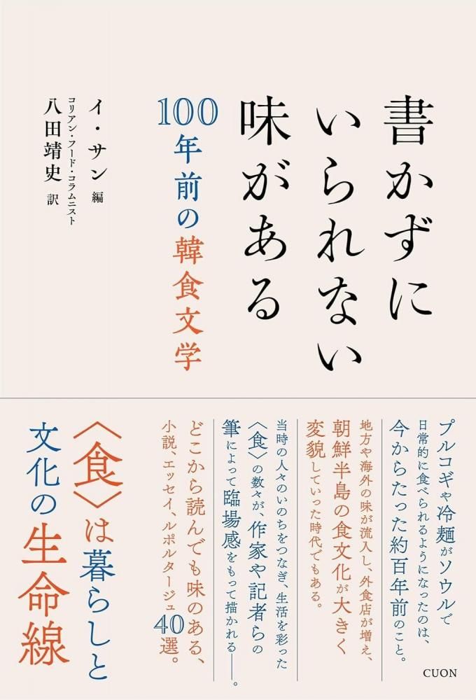 ホーム / 文学・人文学 / 海外文学 new書かずにいられない味がある 100年前の韓食文学 前のページに戻る 一九一〇年代、ソウルに住む大部分の人たちは冷麺を知らなかった。プルコギは一九二〇年代の半ばになって初めて登場した。驚くべきことである。私たちが好んで食べている料理の歴史が、まだ百年そこそこだなんて。 (はじめに) 地方や海外の味が流入し、外食店が増え、朝鮮半島の食文化が大きく変貌していった時代、それは文学にも直結する。 舌の快楽を文学で語るのは韓国も、日本も、世界中どこの国でも共通する。 韓国の食文化が花開いた百年前、作家や記者はどのように言葉に残したのか。 どこから読んでも味のある、小説、エッセイ、ルポルタージュ40選。 編:イ・サン 訳:八田靖史 出版社:クオン 2025 ソフトカバー 244p 新刊書籍 状態 状態について A : 新品同様 B : 汚れや痛みなどが少なく、古書としてきれいな状態 C : 古書として標準的な状態 D : 汚れ、傷みあり ※当店では商品への値段の書き込み、ラベル貼りは行っておりません。 販売価格 2,200円(税込) カートに入れる For international customers 最近チェックした書籍 new沈黙の塔 Tower of Silence / 表萌々花 Momoka Omote(サイン入 Signed) 7,150円(税込)