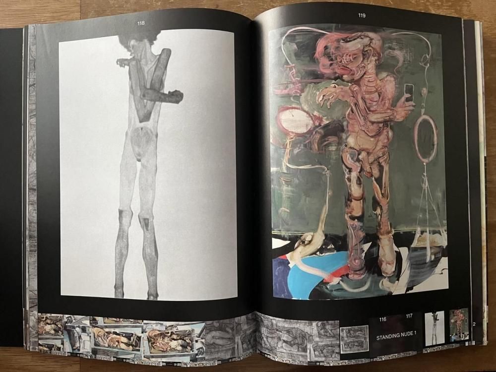 ホーム / アート・デザイン / 海外のアート・美術 newSHADOW PAINTINGS / ADRIAN GHENIE エイドリアン・ゲニー 前のページに戻る ルーマニア出身、ドイツを拠点にする画家、ADRIAN GHENIE(エイドリアン・ゲニー)の作品集。ウイーンでの個展に合わせ制作された。 パレットナイフを用い、ジェノサイドなどの圧倒的な暴力に関わった人間を描き出す。 フランシス・ベーコンの影響もあるようだが、この作品集では同じく大きな影響を受けたエゴン・シーレの絵をモチーフに描かれており、現代に描かれるそれらの人間の多くがパソコンやスマートフォンを握りしめ、何かに押し潰され、肉体が歪められている。 エゴン・シーレと比較をした多数の論考やインタビューを収録。 HATJE CANTZから。 コデックス装、三方黒染 英語 著者 Author:ADRIAN GHENIE(エイドリアン・ゲニー) 出版社 publisher:HATJE CANTZ 2024 hardcover 24.41 x 3.4 x 33.81 cm 250p B 状態 状態について A : 新品同様 B : 汚れや痛みなどが少なく、古書としてきれいな状態 C : 古書として標準的な状態 D : 汚れ、傷みあり ※当店では商品への値段の書き込み、ラベル貼りは行っておりません。 販売価格 13,200円(税込) カートに入れる For international customers 最近チェックした書籍 new生活史の方法 人生を聞いて書く 1,155円(税込)