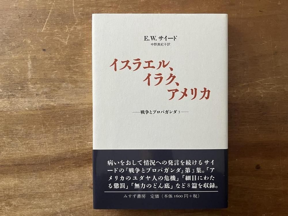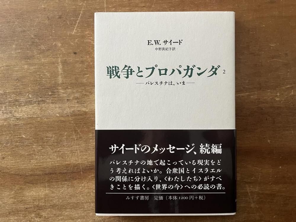 ホーム / 文学・人文学 / 哲学・思想・宗教・社会学・心理学 new戦争とプロパガンダ 4冊セット 前のページに戻る <わたしたち一人一人が声を上げて、抗議の行進に加わらなければならない——今こそ、そして何度も、何度も。> 2002年、エドワード・W・サイードが亡くなる直前に発表されたメッセージ集。 きっかけは911を発端とするアメリカが起こしたイラク戦争。 一度事を起こしてしまえば簡単には止められない。そうならないように私たちがすべきこととは。 戦争と民主主義について、アメリカ・イラク・イスラエルについて、そしてパレスチナについて 1 戦争とプロパガンダ プロパガンダと戦争 集団的熱狂 反発と是正 無知の衝突 ふるい起たせるヴィジョン 危険な無自覚 イスラエルの行きづまり 「9・11」をめぐって——インタビュー 2 戦争とプロパガンダ2 ーパレスチナは、いまー パレスチナに芽生えるオルターナティヴ 一段の締めつけ アメリカについての考察 オスロに何の価値がある? この先を考える イスラエルは何をしたのか 訳注 オスロ合意(パレスチナ暫定自治合意)のあゆみ 3 イスラエル、イラク、アメリカ ー戦争とプロパガンダ3ー アメリカのユダヤ人の危機 パレスチナの選挙が浮上 一方通行 細目にわたる懲罰 不統一と党派対立 無力のどん底 イスラエル、イラク、合衆国 生まれついてか、選び取ってか 4 裏切られた民主主義 ー戦争とプロパガンダ4ー ヨーロッパvs.アメリカ イラクについての誤情報 緊急課題 ゆるしがたい無力 偽善の金字塔 責任者は誰だ? もう一つのアメリカ ラガドのアカデミー 著:エドワード・W・サイード 訳:中野真紀子・早尾貴紀 出版社:みすず書房 2002-2003 1巻(6刷)、2巻(初版)、3巻(2刷)、4巻(初版) ハードカバー B(帯付) 状態 状態について A : 新品同様 B : 汚れや痛みなどが少なく、古書としてきれいな状態 C : 古書として標準的な状態 D : 汚れ、傷みあり ※当店では商品への値段の書き込み、ラベル貼りは行っておりません。 販売価格 3,520円(税込) カートに入れる For international customers 最近チェックした書籍 idea アイデア 367 日本オルタナ文学誌 1945-1969 戦後・活字・韻律 9,900円(税込) new音楽と整体 1 音と仲よくなるための対話集 1,650円(税込)